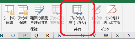 これで校閲のシート保護、ブック保護の近くに従来のエクセルのように「ブックの共有」ができました!