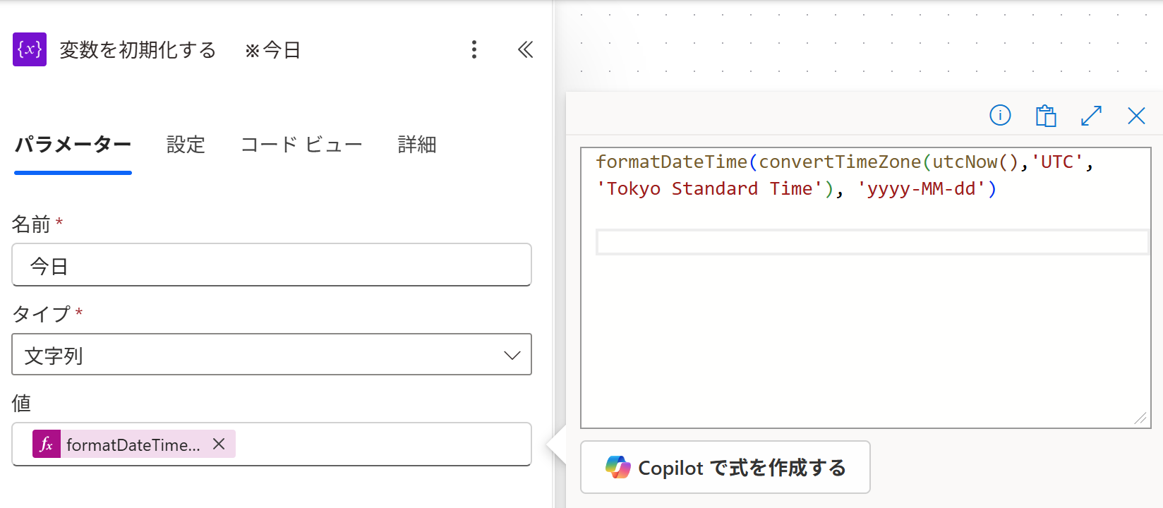 formatDateTime(convertTimeZone(utcNow(),'UTC','Tokyo Standard Time'), 'yyyy-MM-dd')