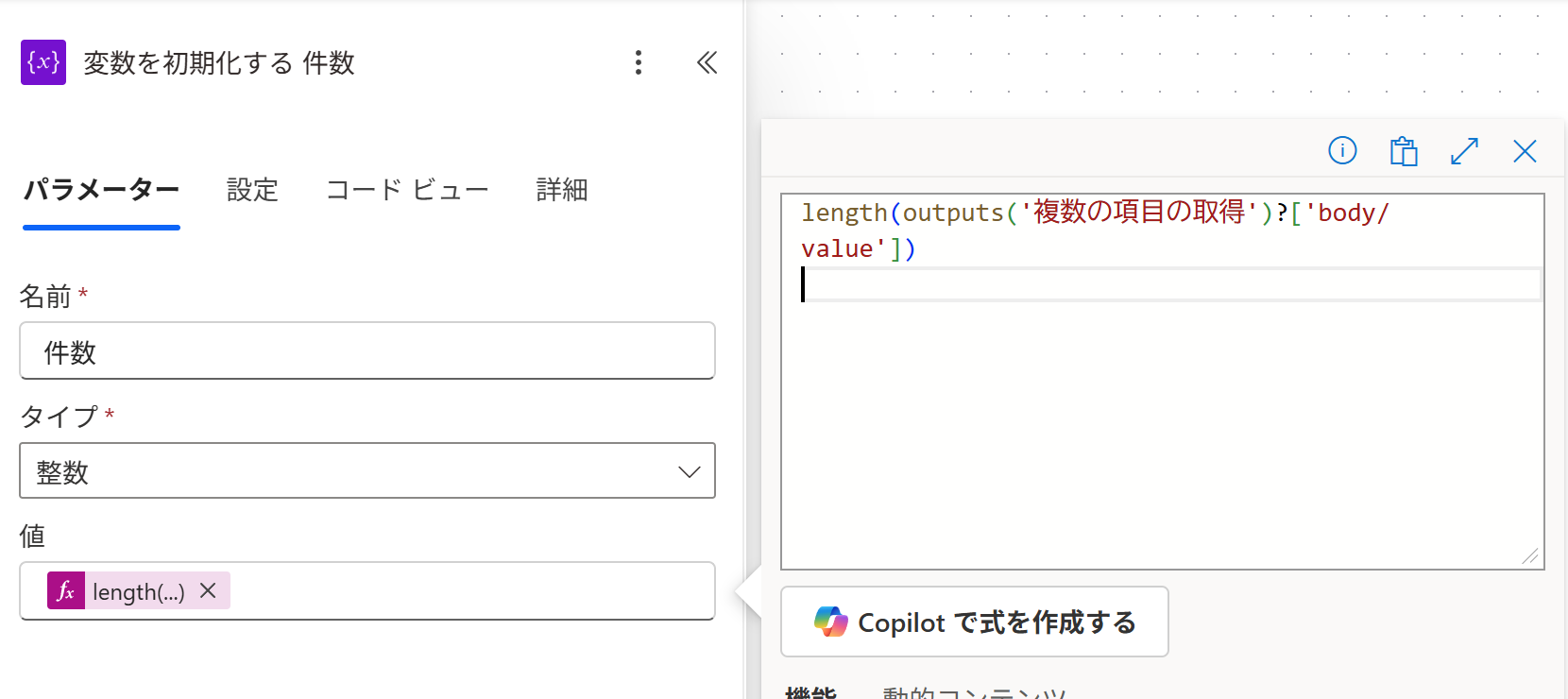 lengthは カウント関数です。 ⚡動的で body/value を選んでlength()で囲ってもOK。